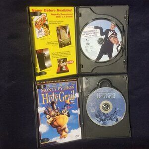 4 dvds with a 'guys night in' vibe! Monty Python and the Meaning of Life, Monty Python and the Holy Grail, Larry the Cable Guy's Christmas Spectacular, and Grand Theft Parsons.