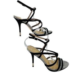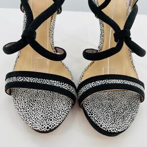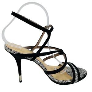 gx by Gwen Stefani Black White Animal Print Ankle Strap Stiletto Heel Sandals 8.5