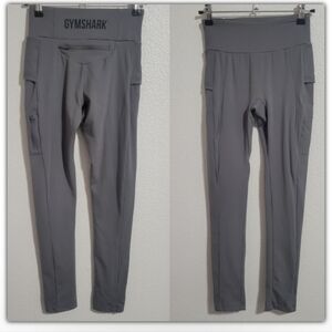 gymshark leggings with multiple pockets size small see pics for verification of size used no holes or stains however has some wash wear see pics measurements approximately flat lay waist 11 front rise 8 inseam 24