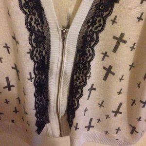 sleeves are not full length, only half way on me. lace going up the inner opening. golden zipper only half way and no pockets