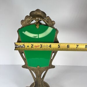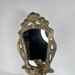 hand held Mirror Stand with Lady Figurine Nouveau cast Brass 11- 7/8" tall