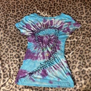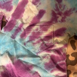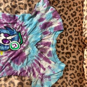Hand made blue and purple tie dye DJPON3 from MY LITTLE PONY inspired fan art with tiny titti pocket and hand fairy woven swirl on the back