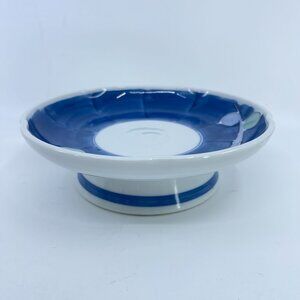 • hand painted japanese pedestal bowl with floral design & blue accents
