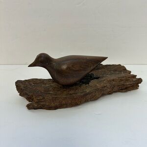 * The piece in the image appears to be a bird perched on a piece of driftwood, showcasing the natural beauty of the wood material.