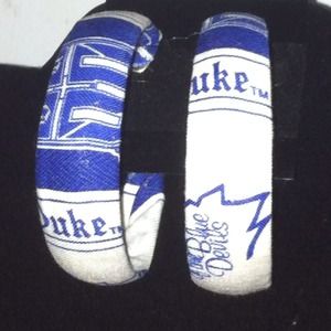 Fabric hoop earrings!!! Available in duke, Carolina, NC State and VTech! You pick who you want and I make them for you on C shape hoops!!