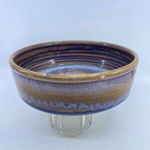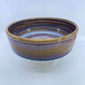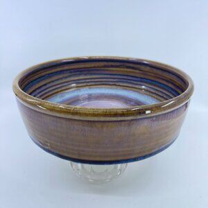 handcrafted studio art pottery ceramic bowl with swirl glaze design 8 5/8"