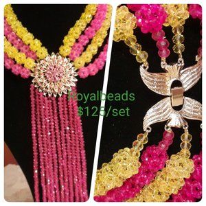 Handmade beads set; necklace with tassel, earring, and bracelet. Well knitted beads, with elongated tassel, multicolor pendant, and clip backside neatly. new with no tag, never worn.