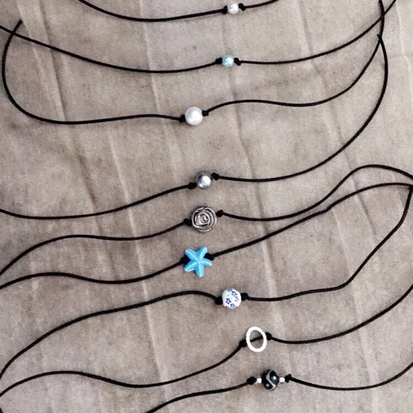 satin rope, pearl/metal/plastic beads: sterling silver clasp