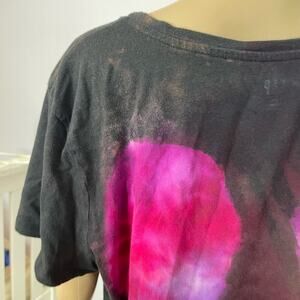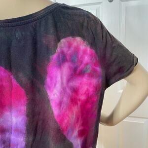 This is a reverse dye, where I removed the black from a black tee and then dyed over it to create amazing heavenly angle wings in shades of magenta, pink, and purple. This was one of my first attempts at reverse dyeing, so there are some sections of the black beyond the wings that lightened just a bit, but it is still a very cool shirt. I have priced it accordingly lower than my general tie dye pieces. Perfect for that angel in your life