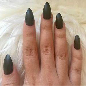 hand-painted matte black false stiletto nails