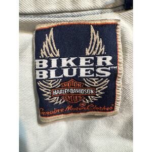 Vintage Harley-Davidson Biker Blues sleeveless denim snap-front shirt.