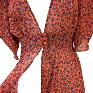 &harmony kimono sz S Red/orange Floral Cover up duster Semi sheer beach summer