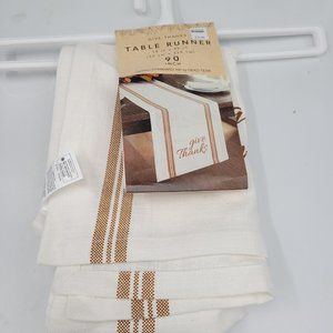 Lay out a stylish foundation for your seasonal tablescape with the Harvest Give Thanks Border Table Runner. Attractive cotton runner is machine washable for easy care and displays a beautiful rustic theme to highlight your festive gatherings.