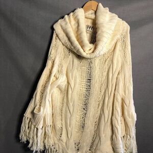 haute hippie Mesh Knit poncho os beige knit boho knit onesize m l Sweater to