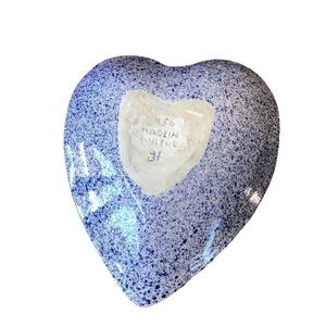 Portugal Heart shaped Splatter Glazed Ceramic Dish Green on Top Blue on Bottom 9” x 7.5”