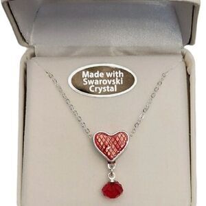 🎁Heart shaped pendant with solitaire Swarovski Crystal Ruby Red necklace Beautiful and Elegant in silver color🎊 16”chain . Perfect for any occasion New with tags 💥