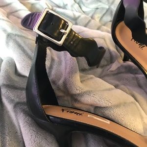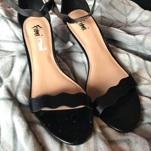 black, strappy heel that are super easy to walk in. worn for a max of 3 hours.