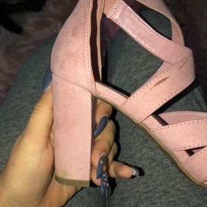 pink criss cross heels from NY&Company. they were only worn once to a gender reveal party. minor stain on the right heel.