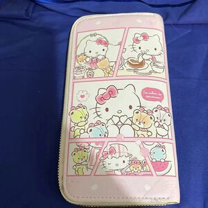 This is a brand new hello kitty wallet. It is has hello Kitty and teddy bears on the wallet. It also has Hello kitty baking cake. The inside of the wallet has space for your credit cards, cash and ID. It has also large enough to hold Cellphone. Thank you for looking.
