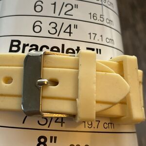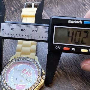 Case and cream silicone band is new. Cute watch for any hello kitty fan and comfortable to wear new battery