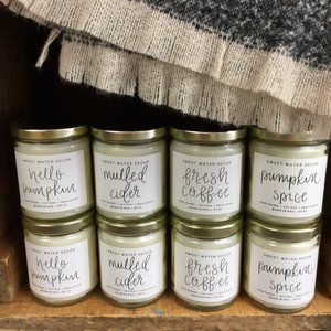 hello pumpkin soy candle, hand poured, soy wax, burn time 40+ hours, gluten + phthalate free, cotton wick, lead free, net weight 7.2 oz, brand new boutique item