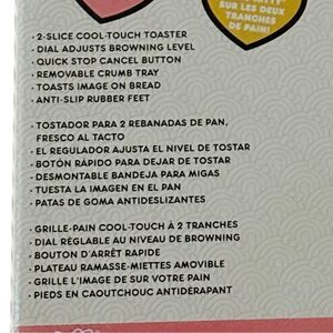 Charming pink toaster with Hello Kitty graphic. Features toast design on top.