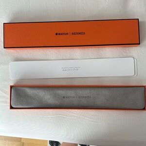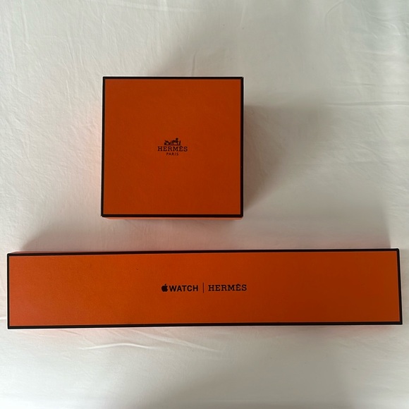 these are two great condition hermes boxes that were both for the hermes x apple watch collection. The square box is for the physical watch but you could definitely store bracelets in it. The second box is for the band and comes with the paper it originally did!!