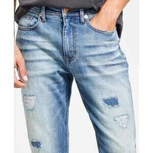 heroes Motors Mens Distressed Slim Straight Leg Jeans 30x32