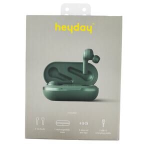 New heyday True Wireless Bluetooth Earbuds 5.0 Green Rechargeable in Case. Comfortable fit, 33ft bluetooth range, up to 8 hours playback, sweat resistant, easy pairing, simple touch controls.