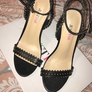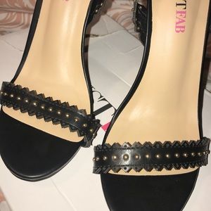 Ankle strap closure, stud detailing, and sky high heel. Approximately 4.5”. Fits true to size. Worn only once.