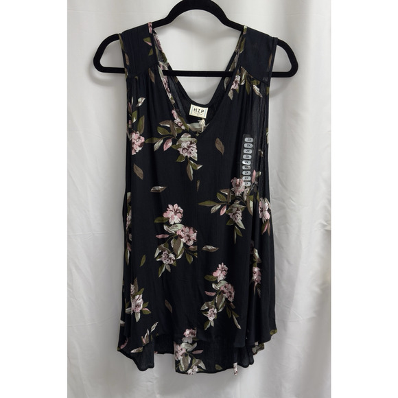 h.i.p. Happening in the Present Tank Top Shirt Women's Size 2X Black Floral