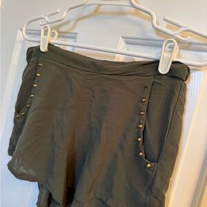 h.i.p. High-waist Shorts with Studs in Olive Green, Size Medium