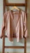 Chic tie-front blouse in a shimmering blush tone. Perfect for versatile styling. Ideal for day or night wear.