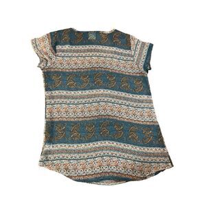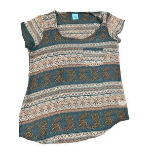 Gorgeous peasant boho vibes sheer blouse with teal and taupe color blends