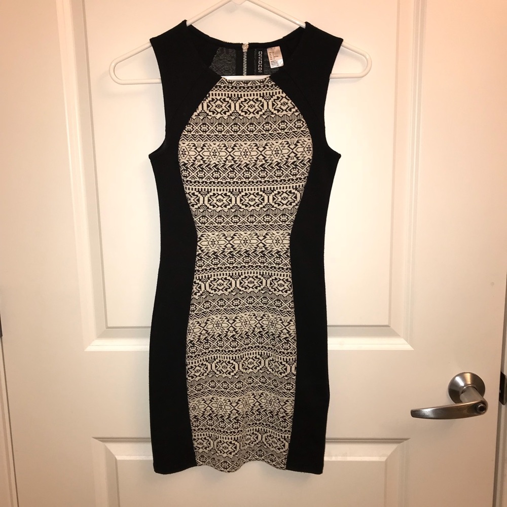 Black and white bodycon dress with zipper, thick fabric and in great condition, worn few times