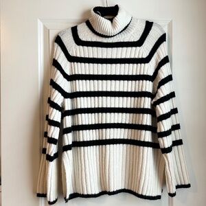 Rib-knit turtleneck sweater.