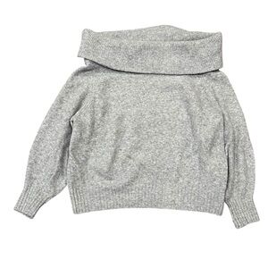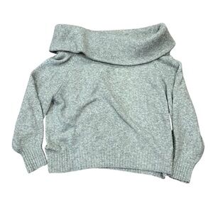 h&m gray fuzzy off shoulder fold over sweater cozy minimalist cottagecore winter