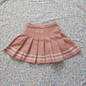 h&m pink varsity pleated skirt w/ white stripes | womens / girls / kids skirt