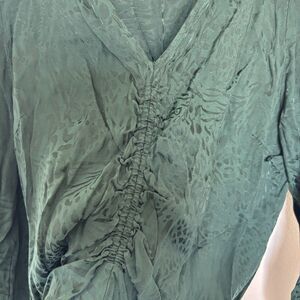 h&m womens plunge top dark green mix cheetah silky light scrunched Size US 14