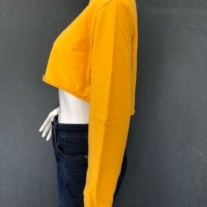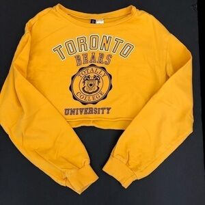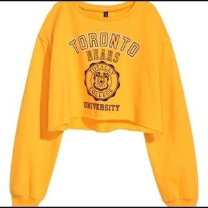 Cropped top in light sweatshirt fabric with a print motif. Dropped shoulders, long, wide sleeves with ribbed cuffs and raw-edge hem.