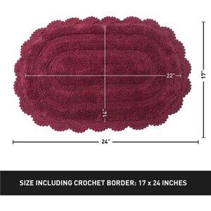 home Burgundy Crochet Bathrug, Cotton Oval bathmat Handcrafted Crochet Border