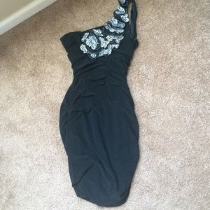 silk, all black, ruffly flowers on the top, silver& black. cheetah on the flowers.