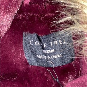 burgundy jacket with fur hood; has pockets and is button up as well as zip up, great condition never worn