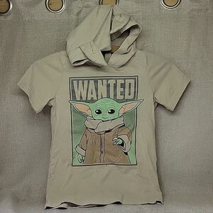 hooded kid size S tshirt, 20" baby Yoda pillow plush