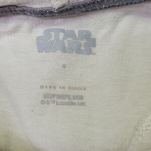 We have included a childs baby yoda hooded tshirt size small. It has a small stain as shown.