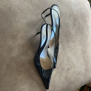 Patent Leather and pointy toe with Silver inside. Made in Italy. Absolutely beautiful and edgy!