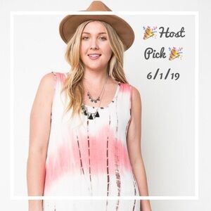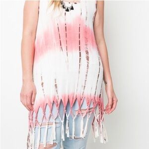 Hayden LA Plus Size Tie Dye Pink, White and Brown Tank with Fringe Pattern at bottom. Uber Cute!! My favorite tank and I love love 💗 tie dye!!!