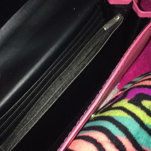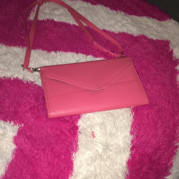 Its a hot pink bag with a readjustable strap.