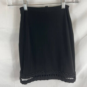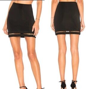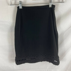 h:ours Enzo Skirt In Black. Fully lined. Hidden side zipper closure. Elastic cord lace trim