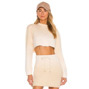 h:ours Malika Cropped Sweatshirt Terry Crew Neck Pullover Neutral Ombre Size XXS